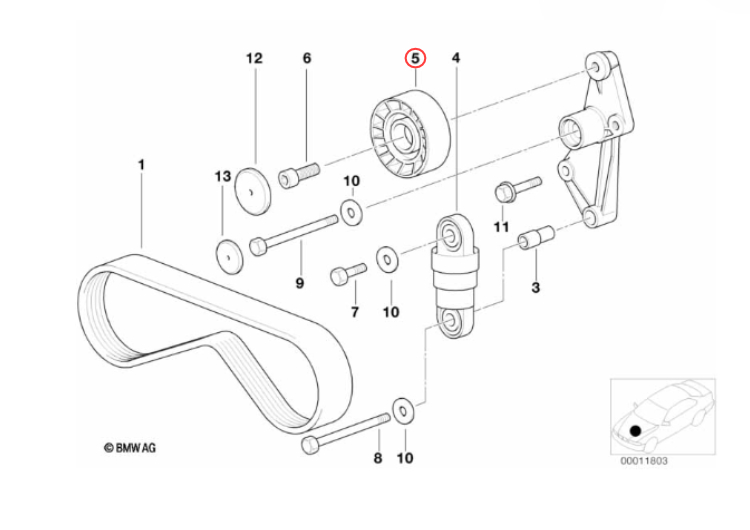 E36 E46 E34 E39 E60 E61 E83 X3 E53 X5 Z3 E36 Z4 E85 E86 ファンベルト テンションプーリー