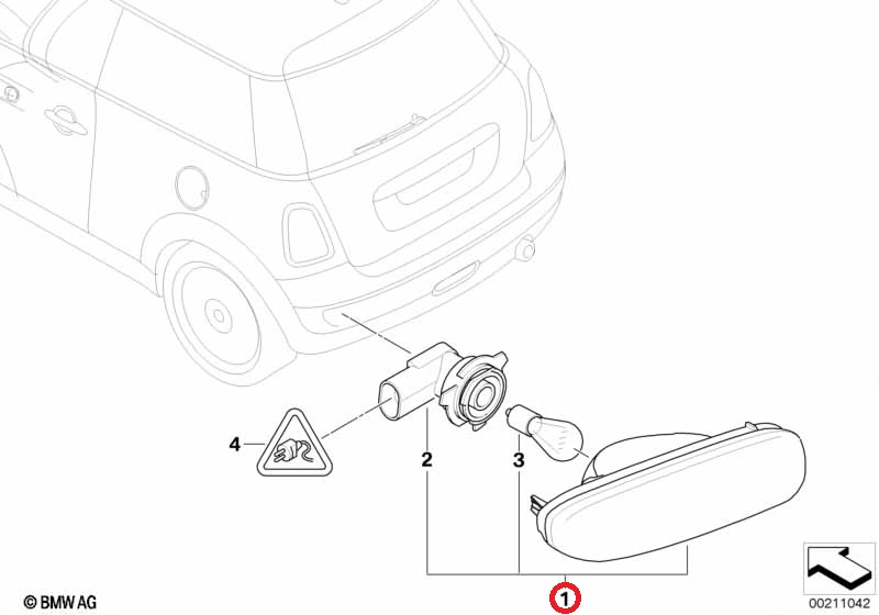 BMW MINI R56 R57 R58 R59 に適合のリアフォグランプ 左側 新品 です。